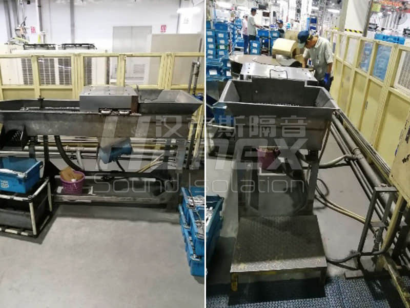 蘇州吉田建材設(shè)備運(yùn)行時產(chǎn)生巨大振動及水花,對本隔音罩的耐久性、防腐蝕性都有了更高的要求。本項(xiàng)目的治理目標(biāo)為:根據(jù)客戶要求,降噪措施實(shí)施后,隔音罩外1m處的噪聲值在85dB(A)左右,修正值為±2dB,開口處除外。剔除其他噪聲對此結(jié)果貢獻(xiàn)。