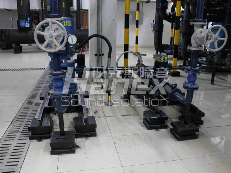 5、 從國內(nèi)已有的案例與我們漢克斯隔音的實(shí)踐來看,地下室設(shè)備房內(nèi)減振降噪,通常是通過支架全部落地,同時對支架與設(shè)備基礎(chǔ)進(jìn)行減振來處理(如紹興人民醫(yī)院住院部的案例);